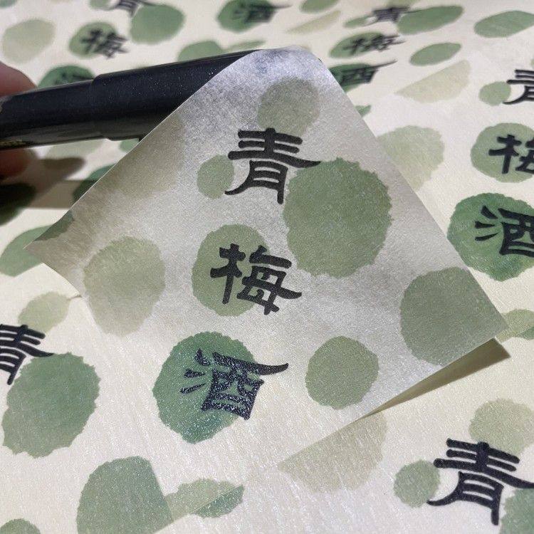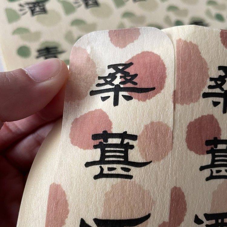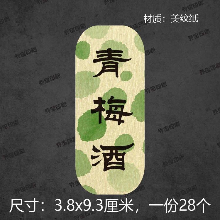 青梅酒标签贴纸不干胶果酒标签枇杷酒酒标空白手写宣纸斑点美纹纸