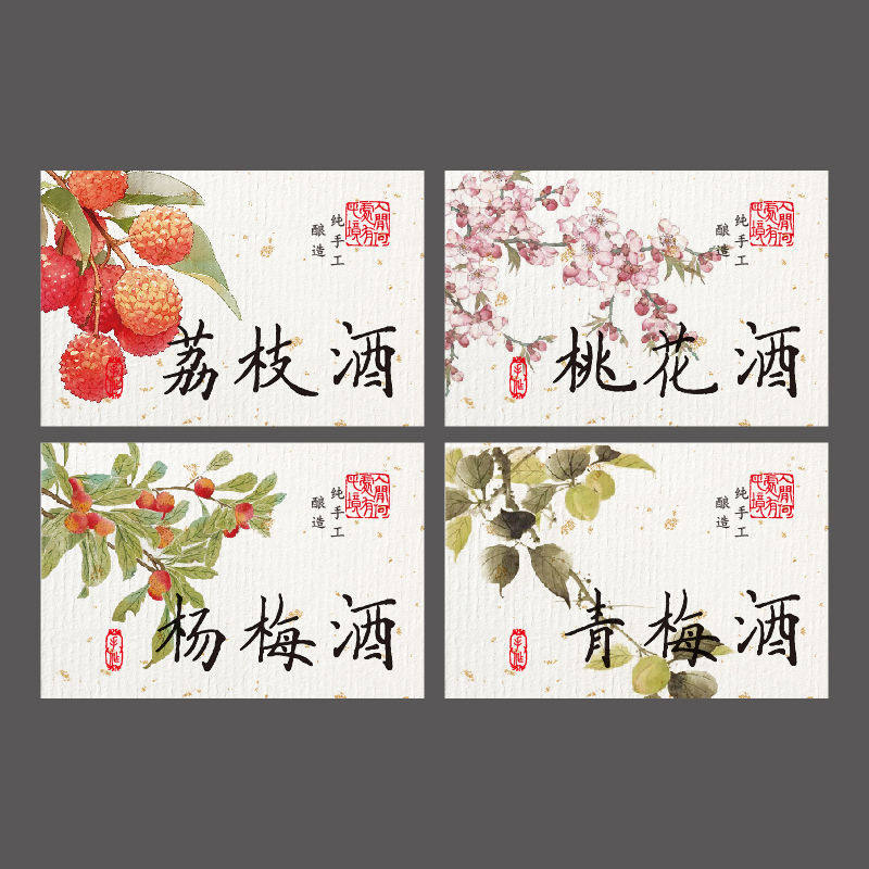手绘插画青梅酒杨梅酒桂花樱桃果酒泡酒不干胶自酿标签贴纸可定制