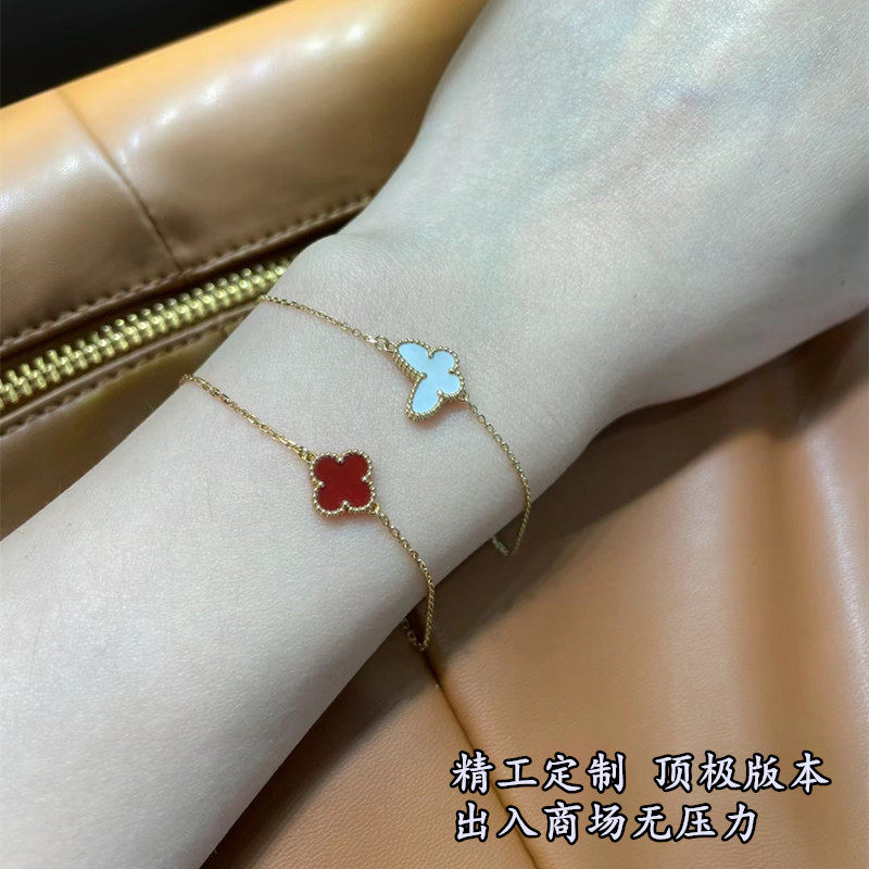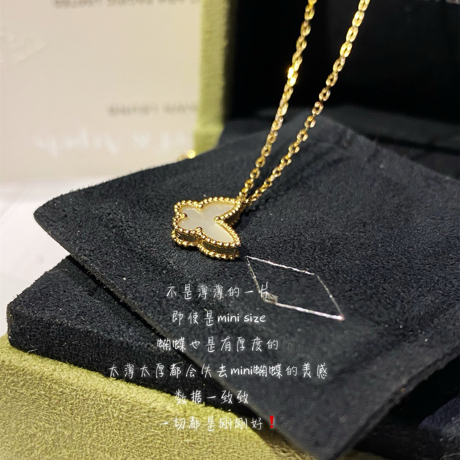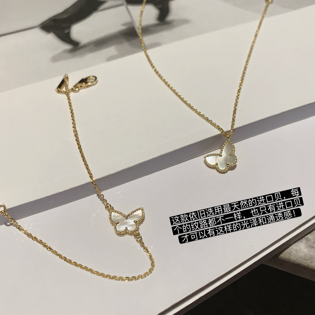 高版本轻奢小蝴蝶项链18K玫瑰金本命年小红花白贝母高级感锁骨链
