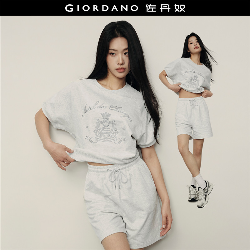 【韩国明星同款】佐丹奴纯棉刺绣圆领短款插肩短袖卫衣女05395519
