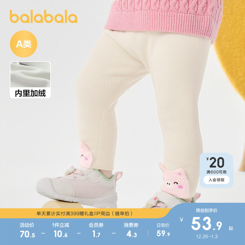 巴拉巴拉儿童加绒打底裤女童保暖冬装长裤子柔软舒适可爱萌趣洋气