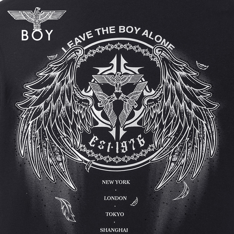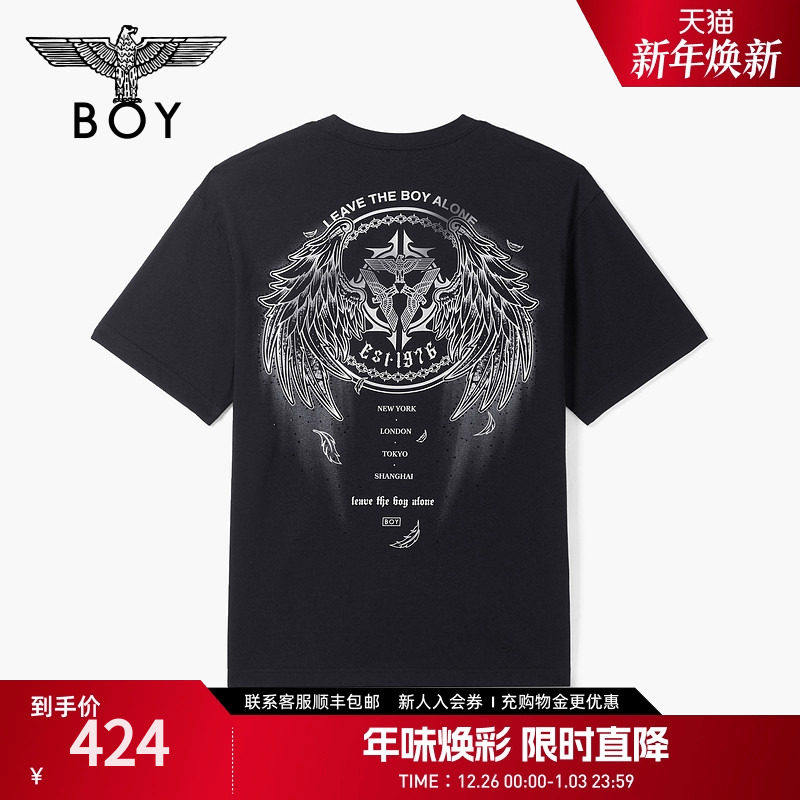 BOYLONDON25新款夏季男女黑色翅膀印花潮牌时尚休闲短袖T恤N03071