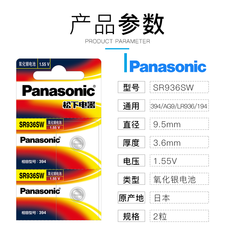 松下394手表电池SR936SW适用于天梭1853斯沃琪swatch日本进口纽扣T461小电子CK精工石英prc200通用LR936型号