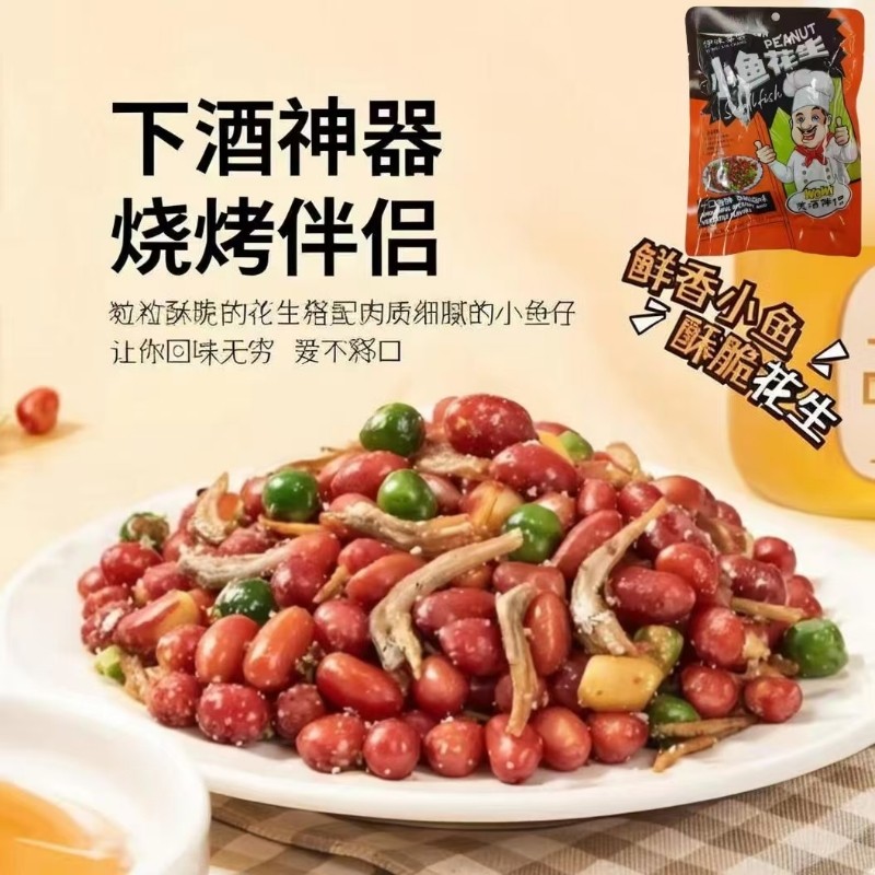 250g小鱼花生米香酥油炸即食麻辣休闲小鱼干商用批发下酒菜夜宵