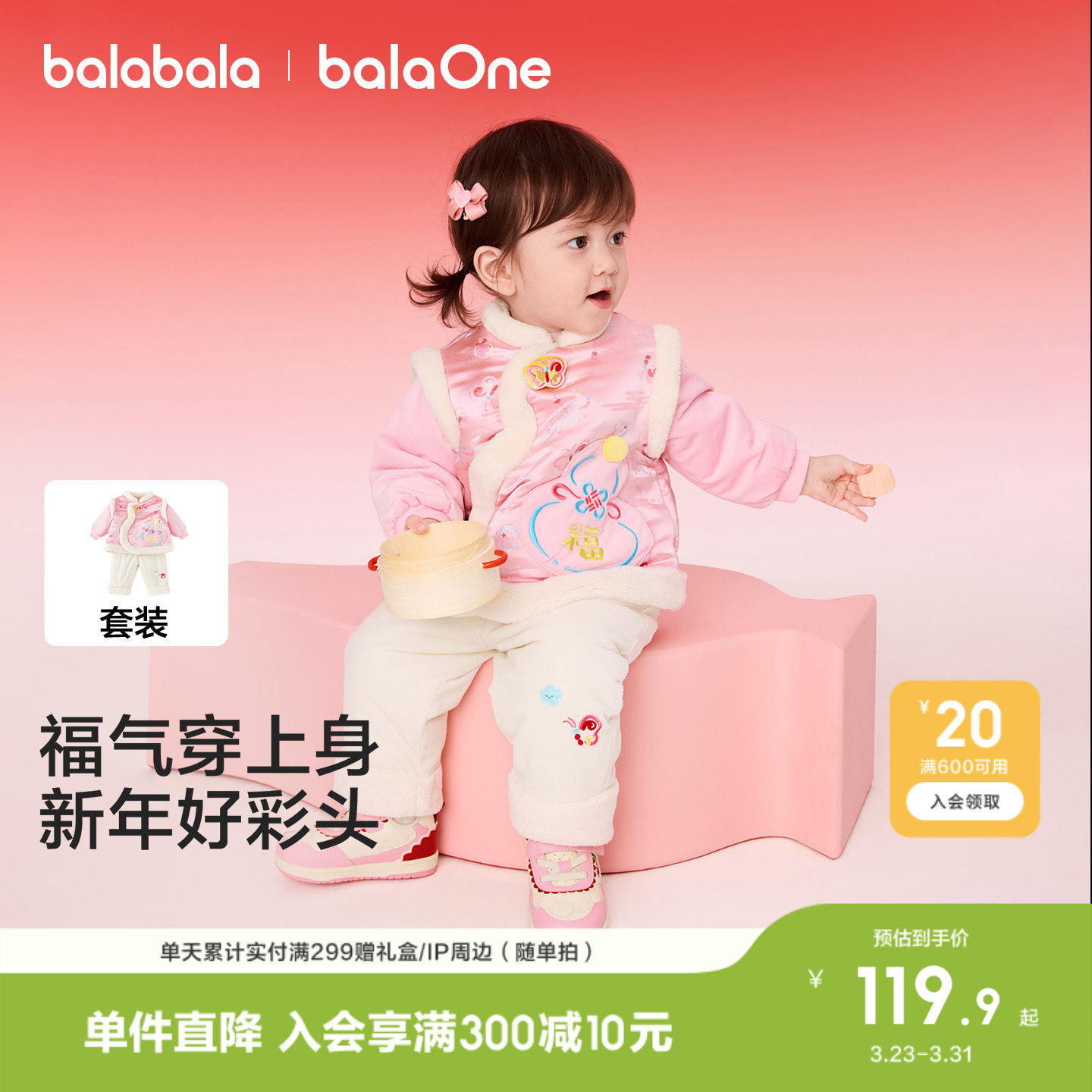 巴拉巴拉童装儿童套装女童宝宝男童两件套新中式2026百搭时尚衣服
