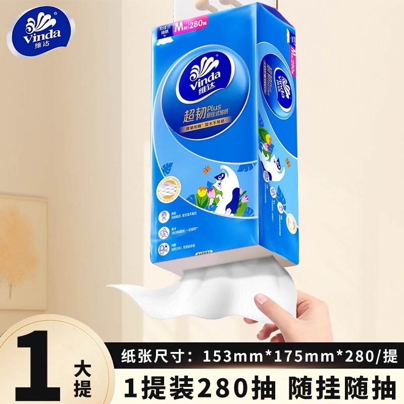 维达超韧抽纸悬挂式卫生纸巾M码280抽1提家用实惠装餐巾纸面巾纸