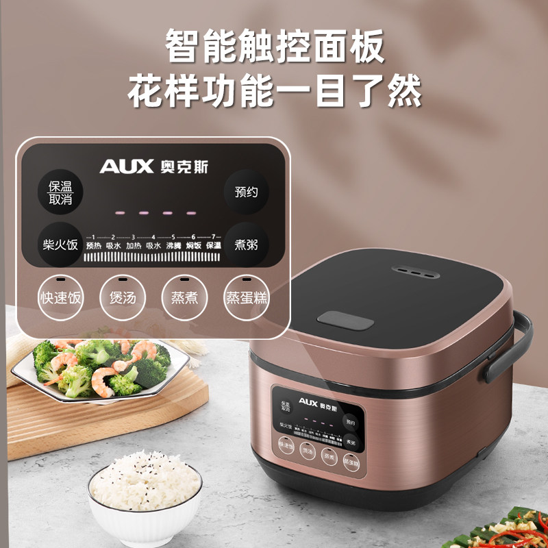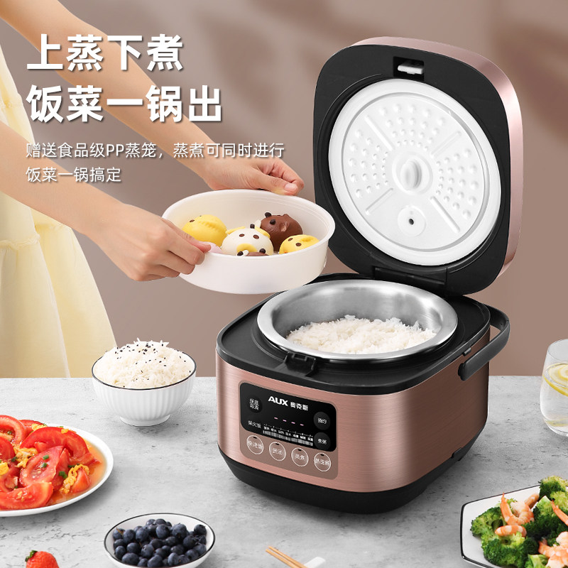 奥克斯电饭煲家用3到5人4升电饭锅0涂层304不锈钢多功能新款低糖