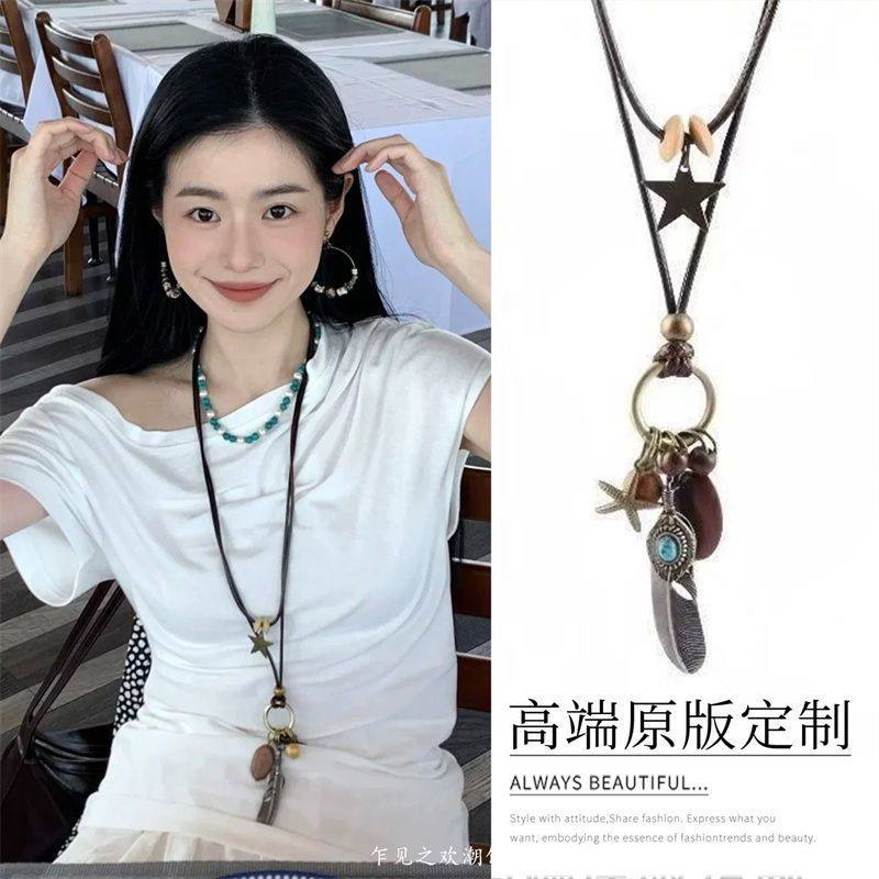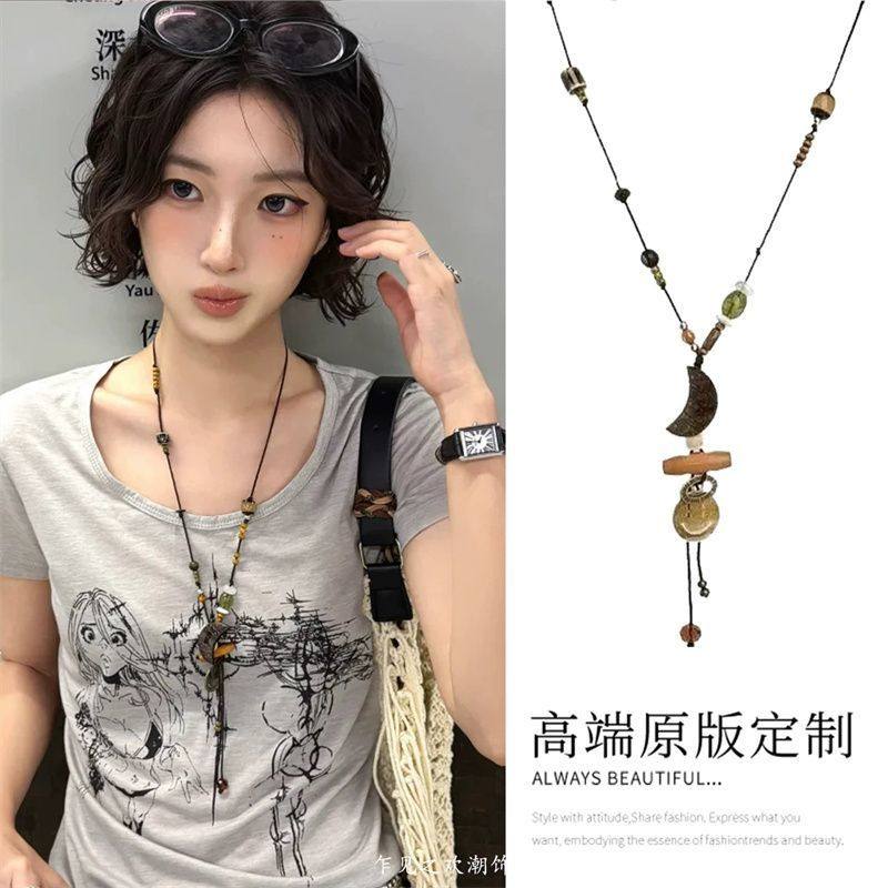 淡人穿搭!波西米亚民族风圆形吊坠长项链复古百搭毛衣链颈链女款