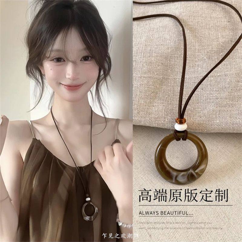 美拉德虎眼石长款毛衣链女款2025新款轻奢高级感项链秋冬装饰配饰