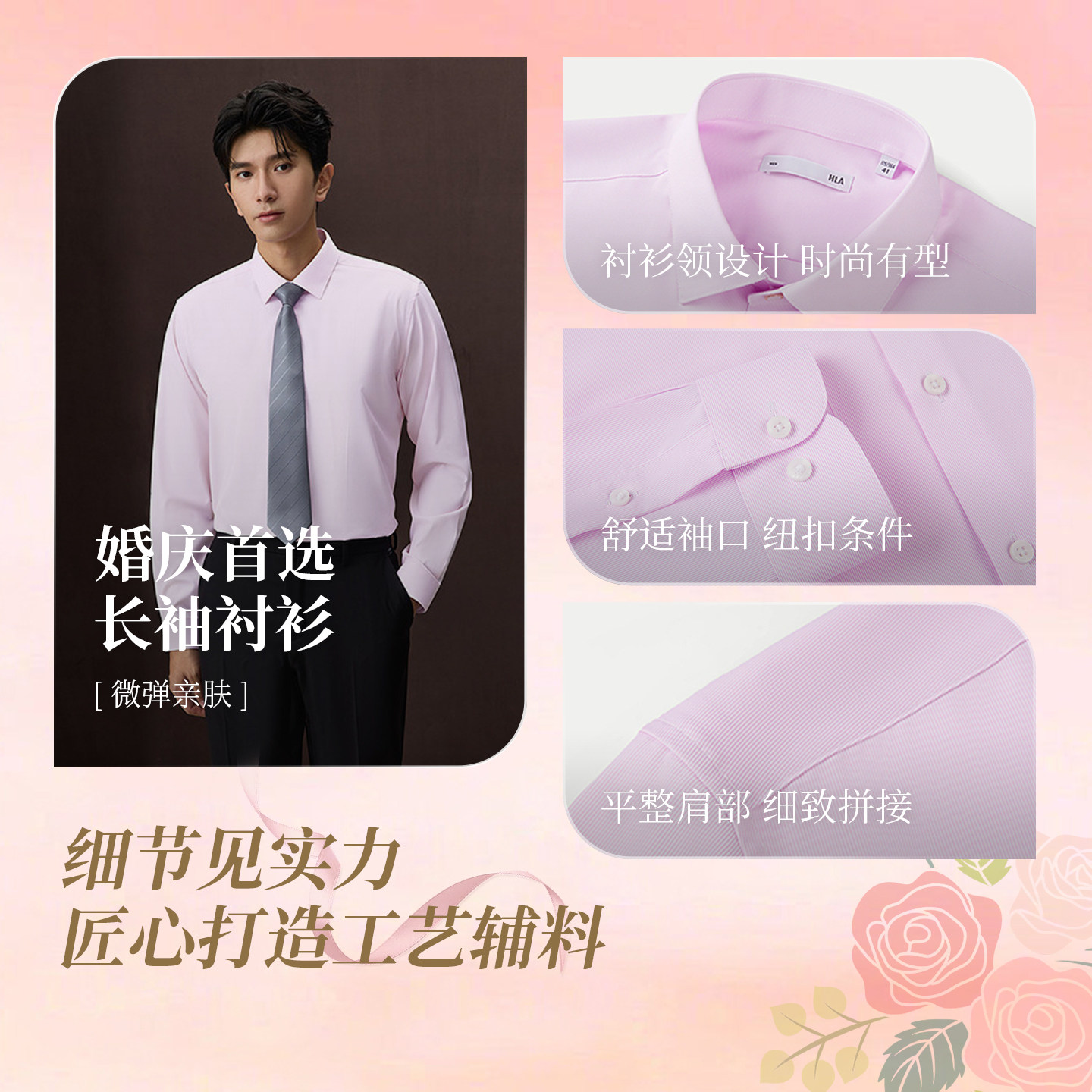 HLA/海澜之家亦心即为长袖正装衬衫25春夏新婚庆宴会时尚衬衣男款