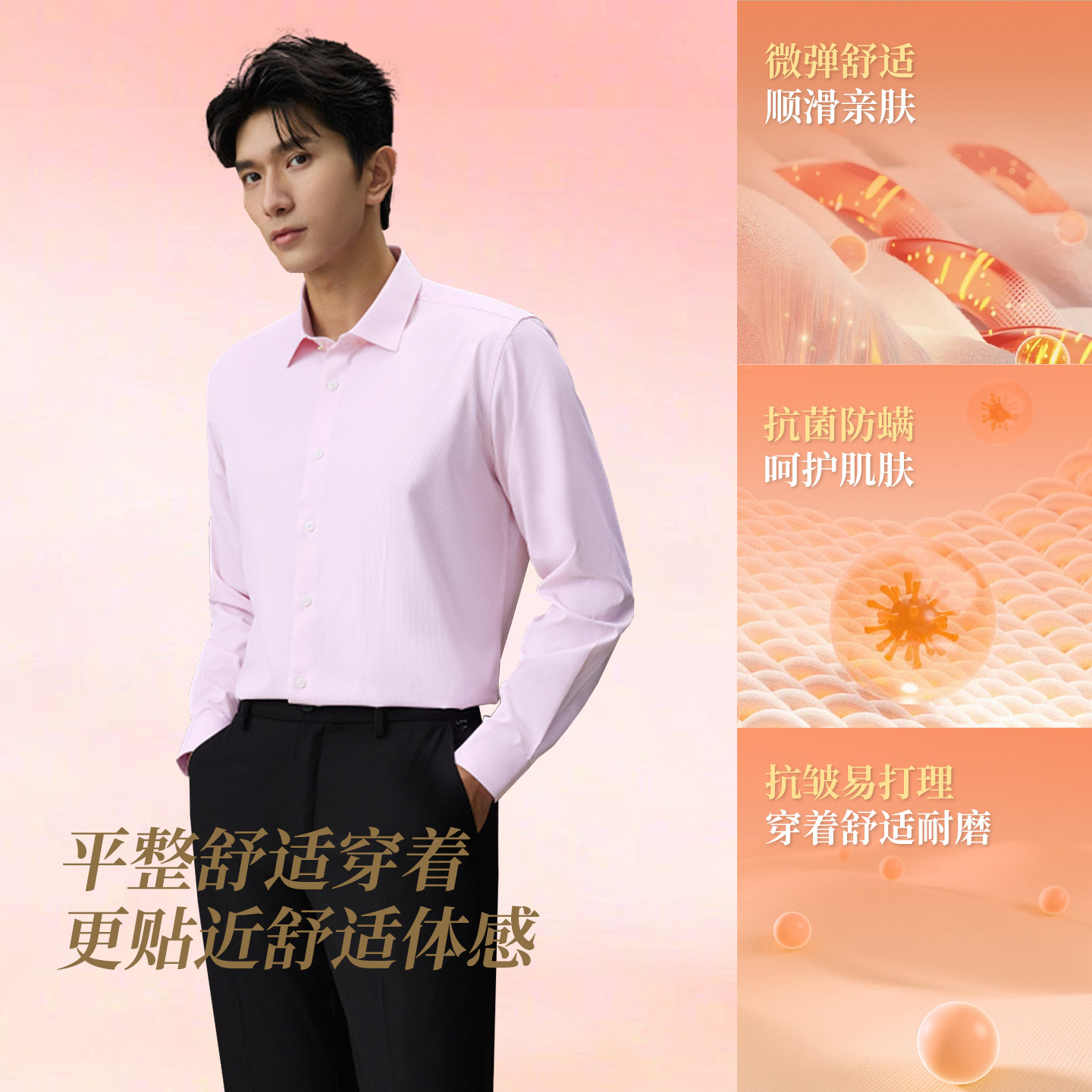 【清仓】杉杉品牌男士长袖衬衫纯色2025春季新款休闲免烫纯棉衬衣