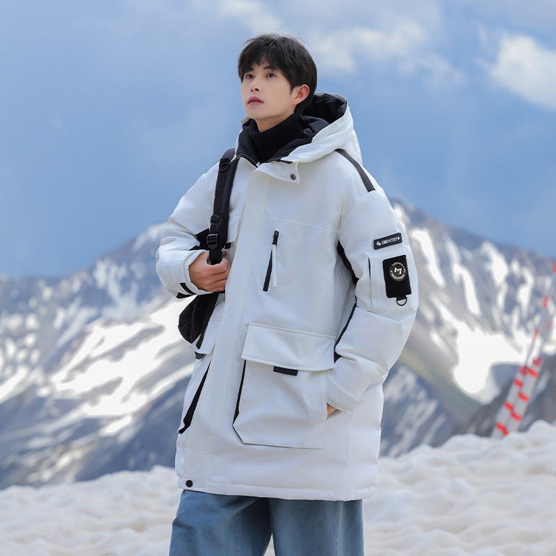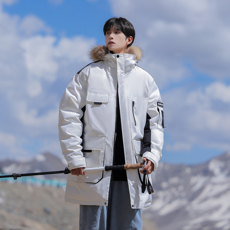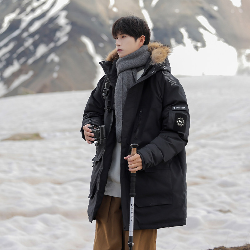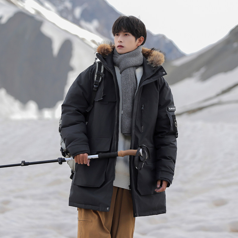 回力中长款工装毛领羽绒服男士冬季款加厚防寒保暖派克服冬装外套