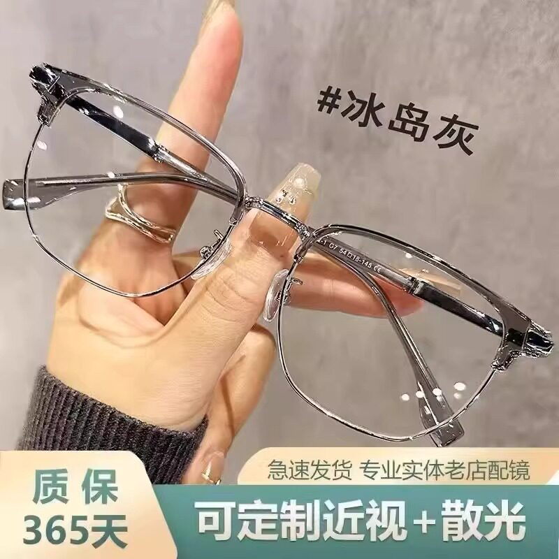 半框眼镜男款近视防蓝光平光镜可配度数高级感斯文理工男痞帅眼镜