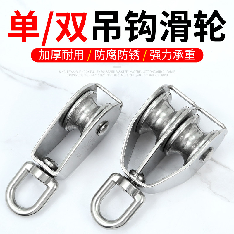 304不锈钢滑轮钢丝绳U型吊环定滑轮起重吊钩拉绳吊线固定省力工具