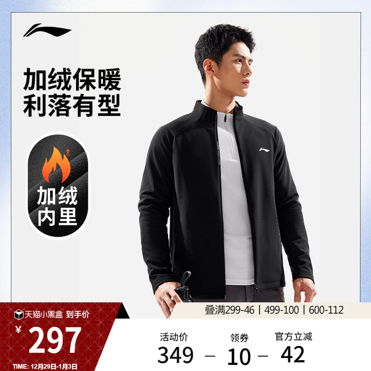 李宁外套男士新款健身系列立领上衣冬季加绒保暖针织开衫运动服