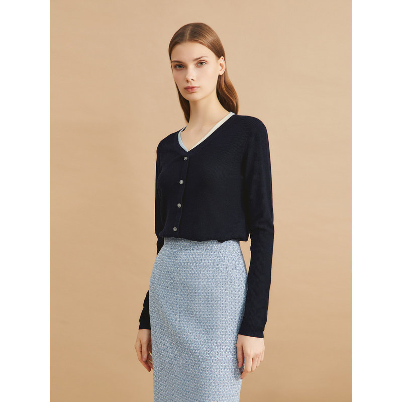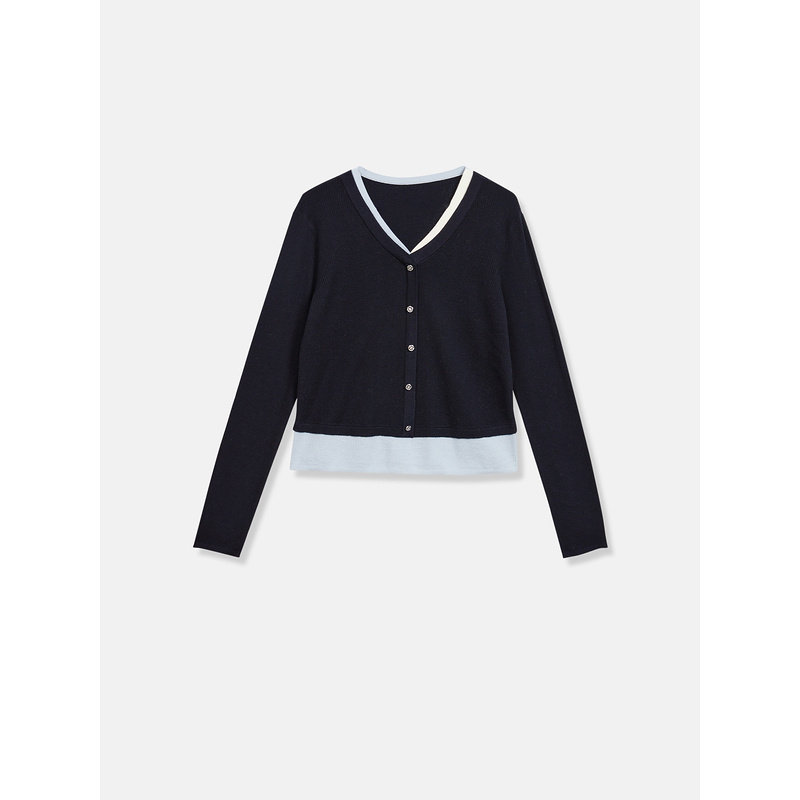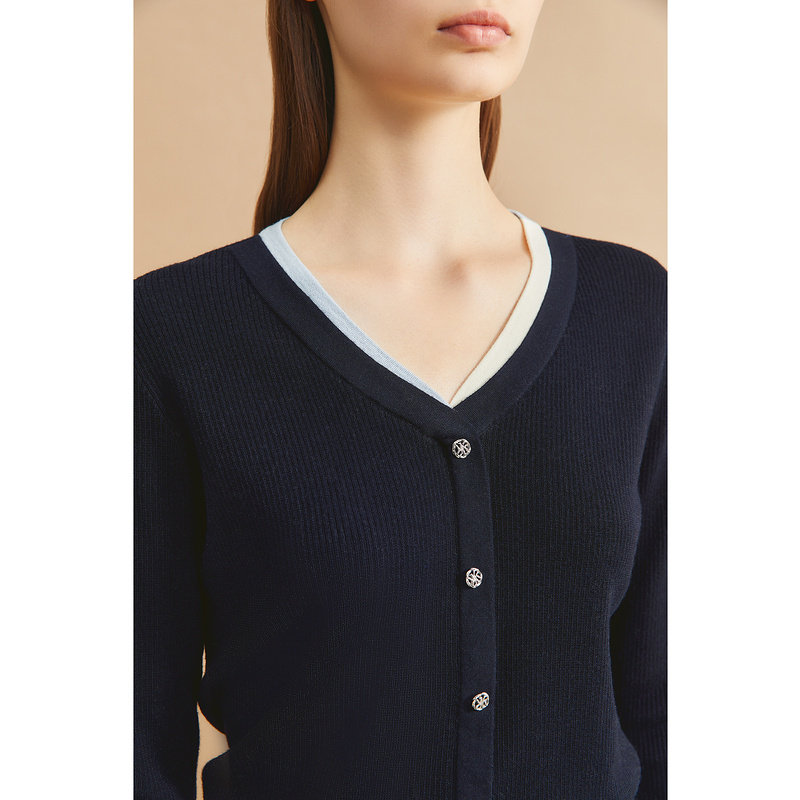 【云感真丝羊毛】YINER音儿冬季法式V领撞色毛针织衫