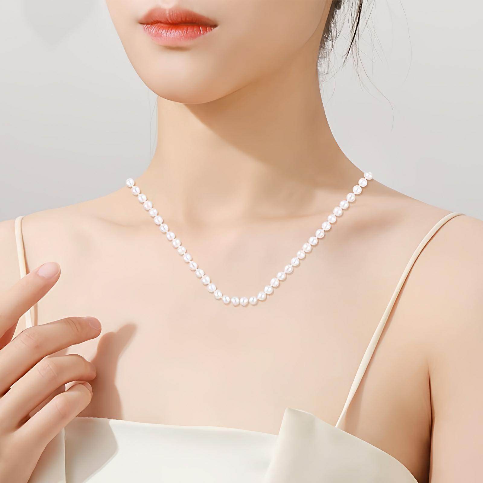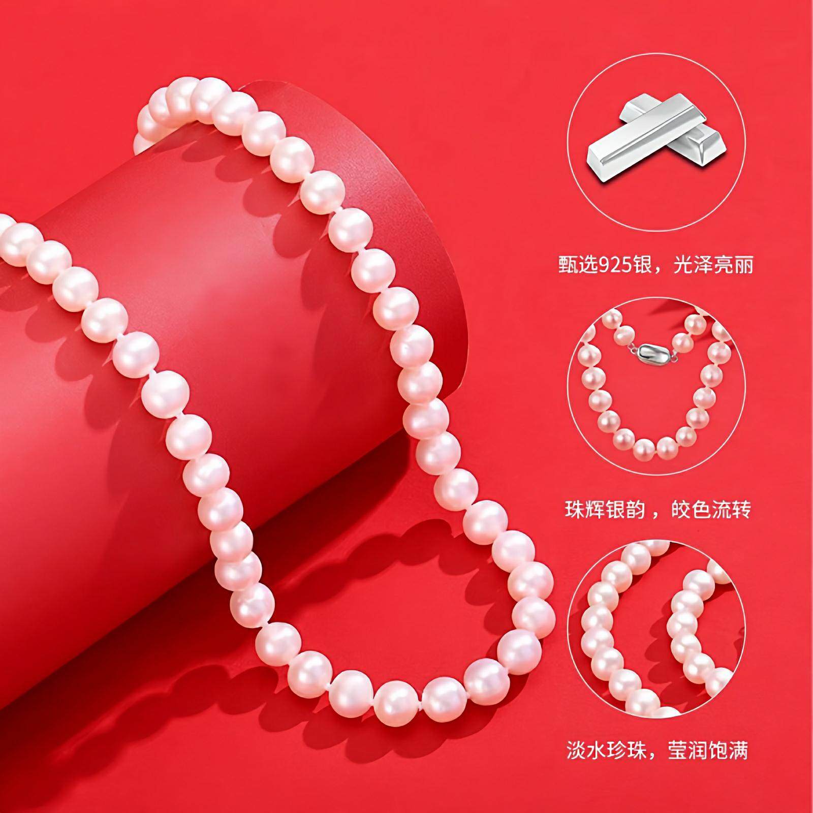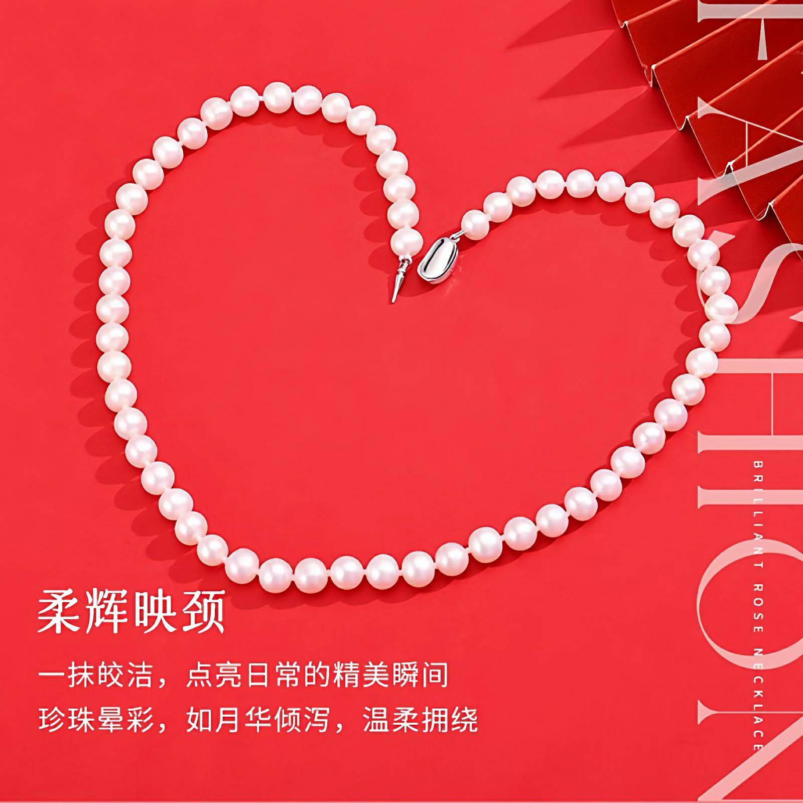 诸暨淡水珍珠项链女甄选近圆强光S925银微瑕全珠链高级感节日礼物