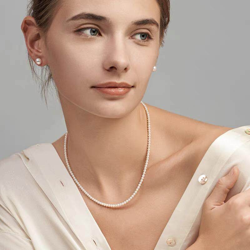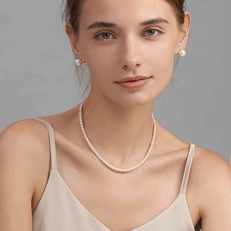 诸暨淡水珍珠项链正圆baby珠18K金锁骨链复古气质百搭小米珠颈链