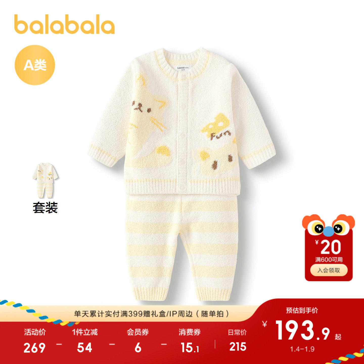 【商场同款】巴拉巴拉婴儿秋衣套装男女童长袖分体宝宝睡衣2025款