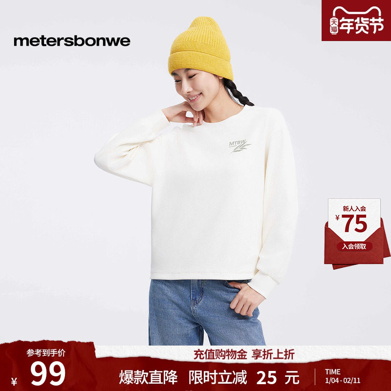 [商场同款]美特斯邦威女2025秋冬季新款简约纯色下摆抽绳长袖卫衣