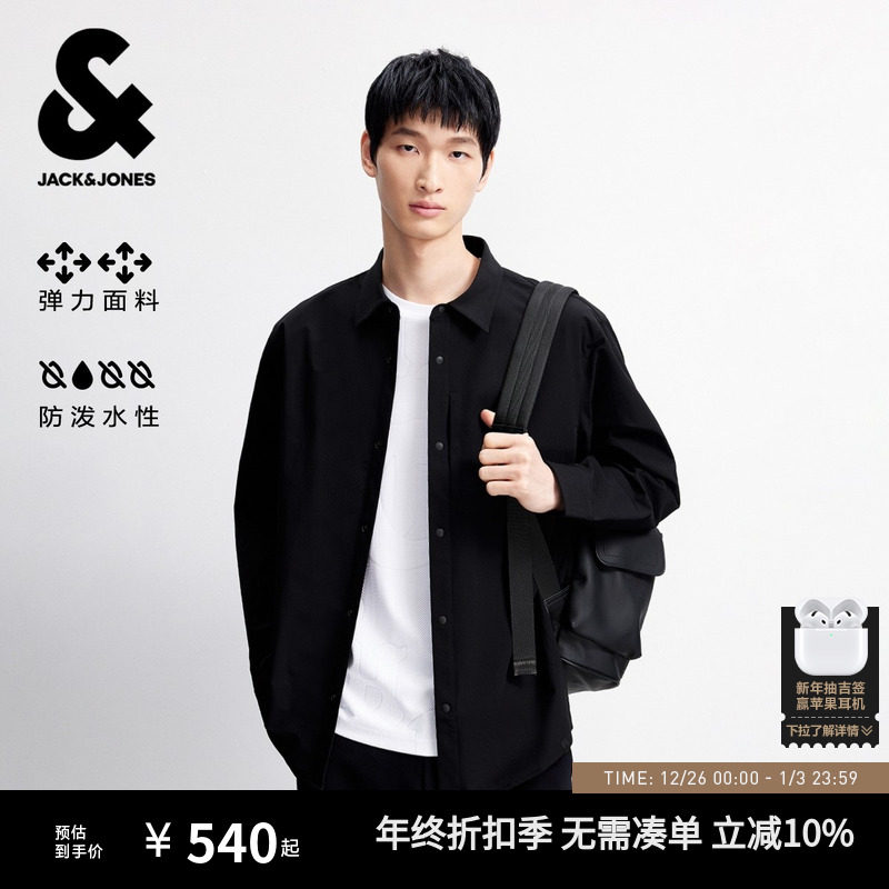 【防泼水】杰克琼斯男装衬衫春季新简约纯色弹力宽松休闲上衣外套