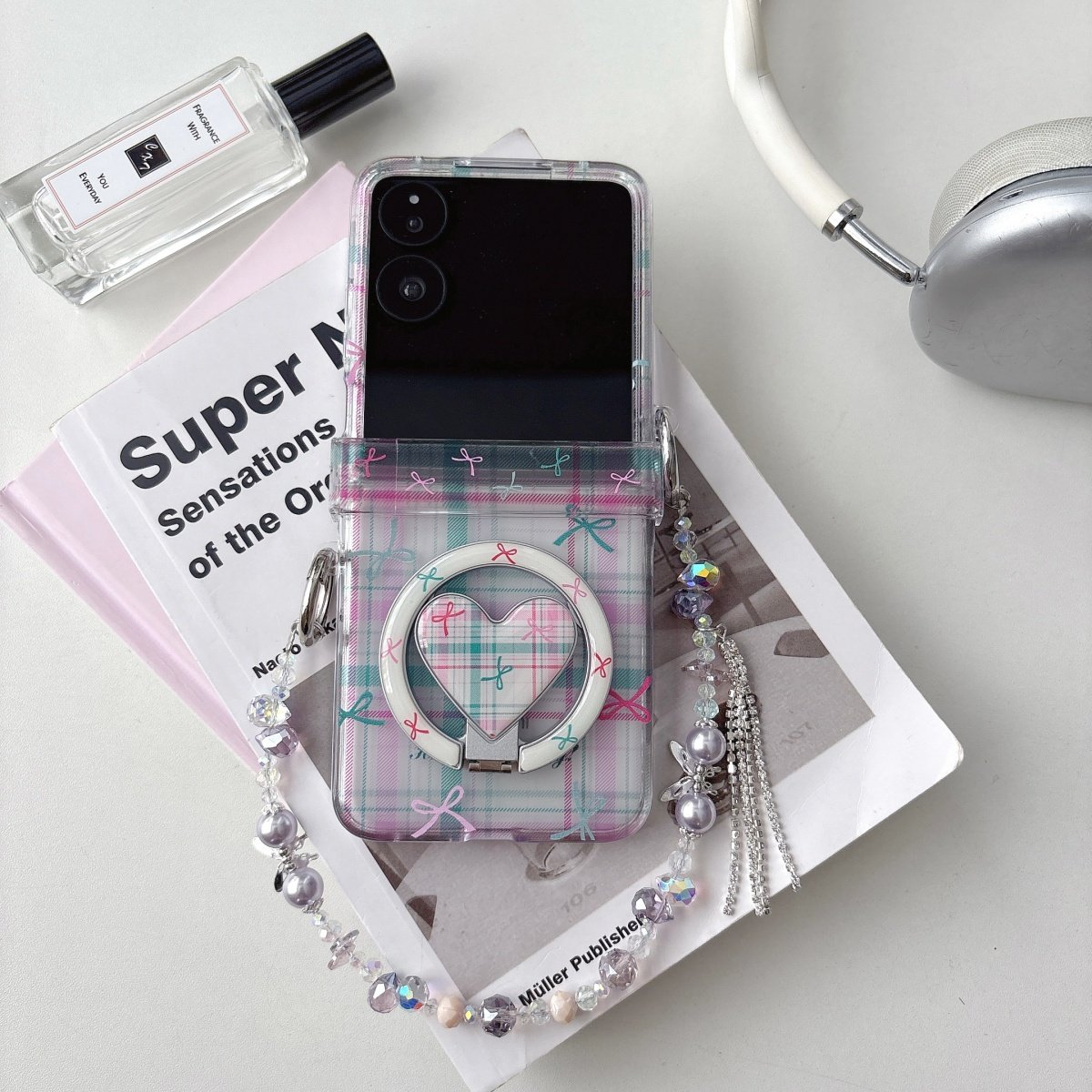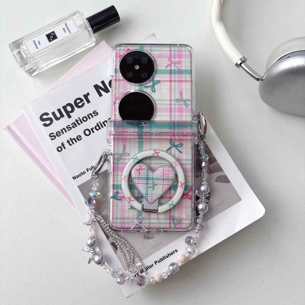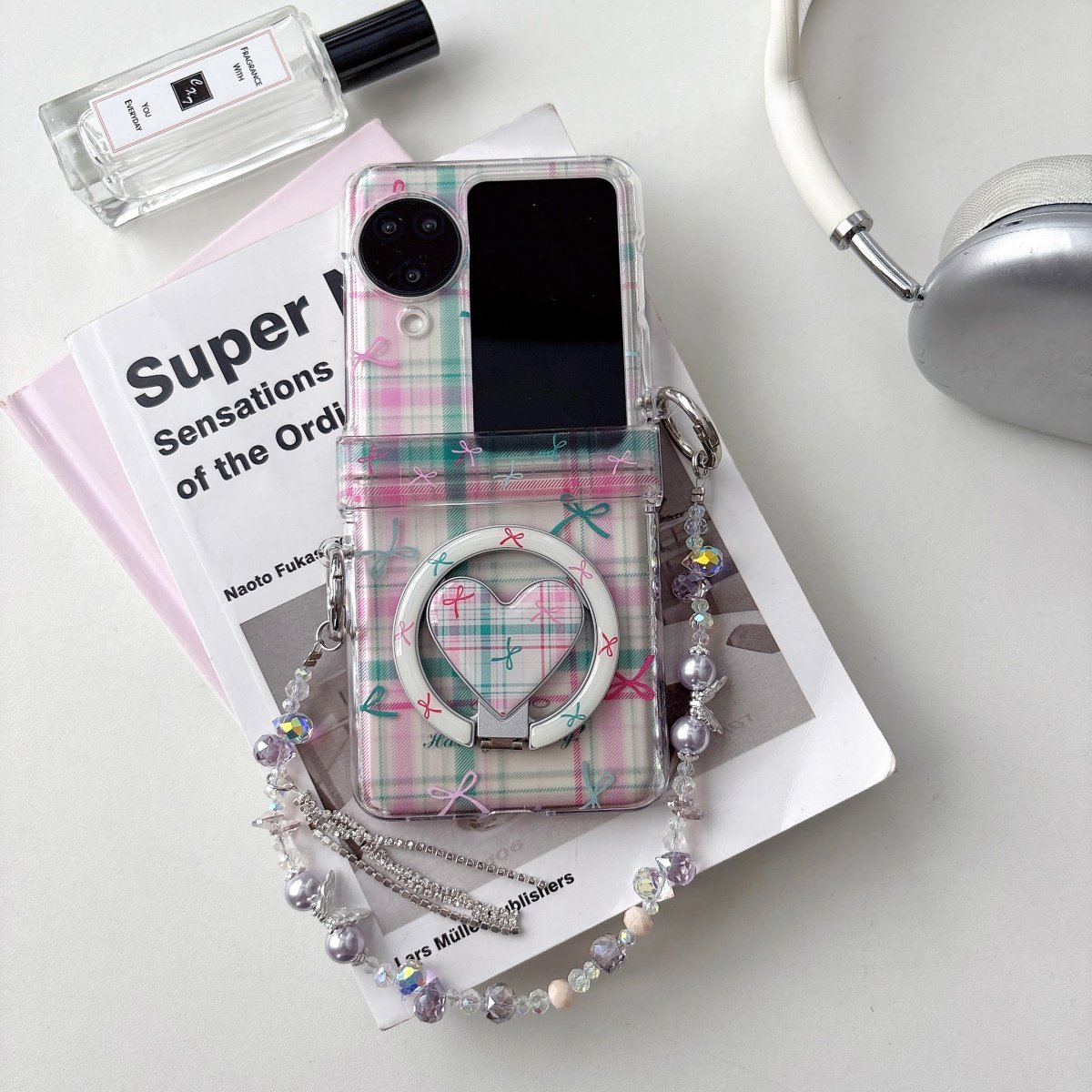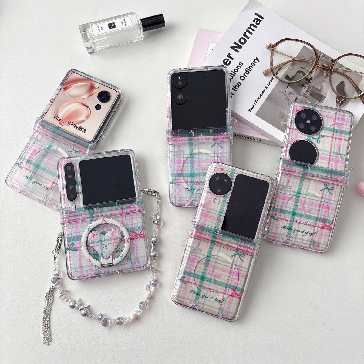 ins格子蝴蝶结适用华为Pura X典藏版手机壳全包折叠屏Pocket2防摔保护套小米mixflip荣耀MagicVFlip2侧扣链条