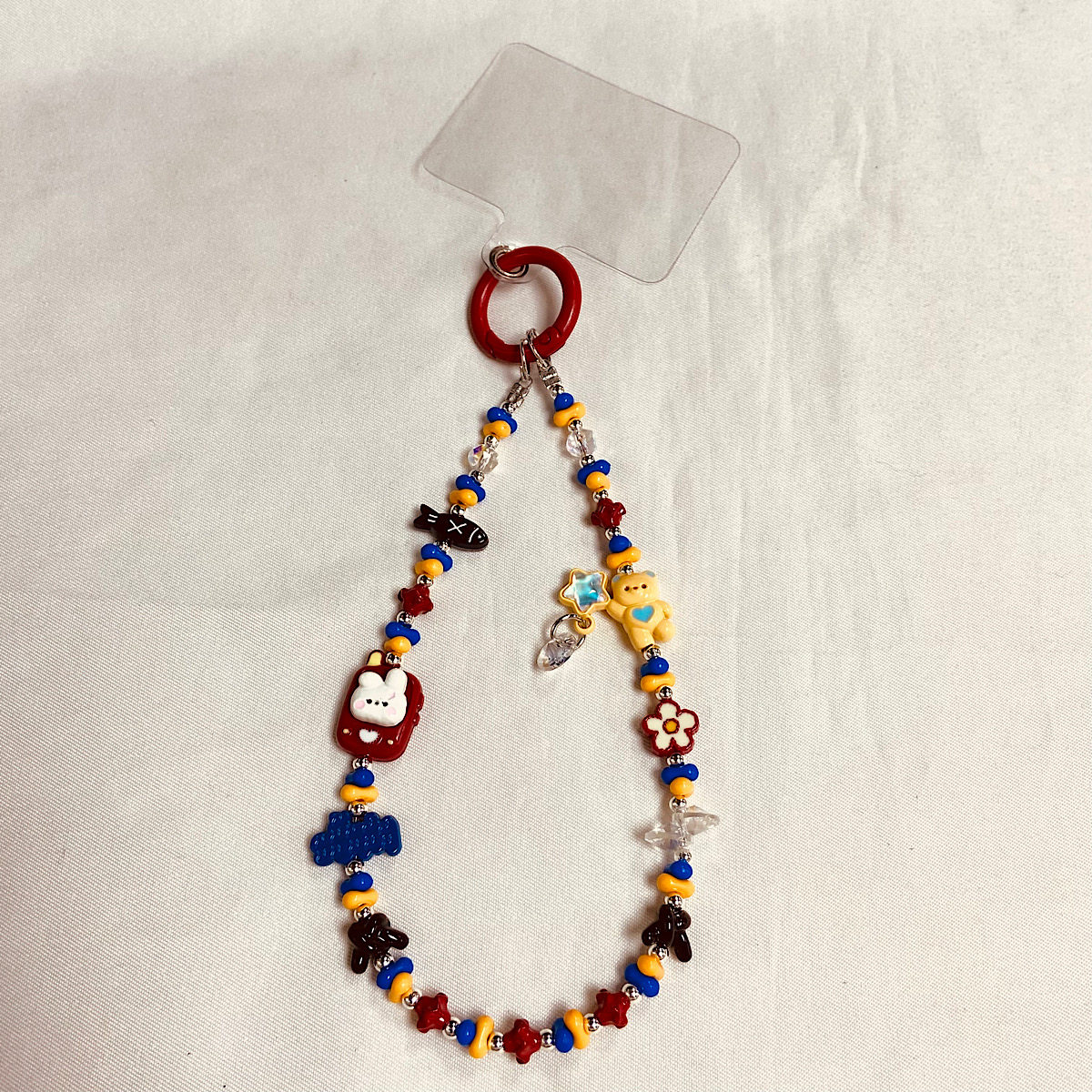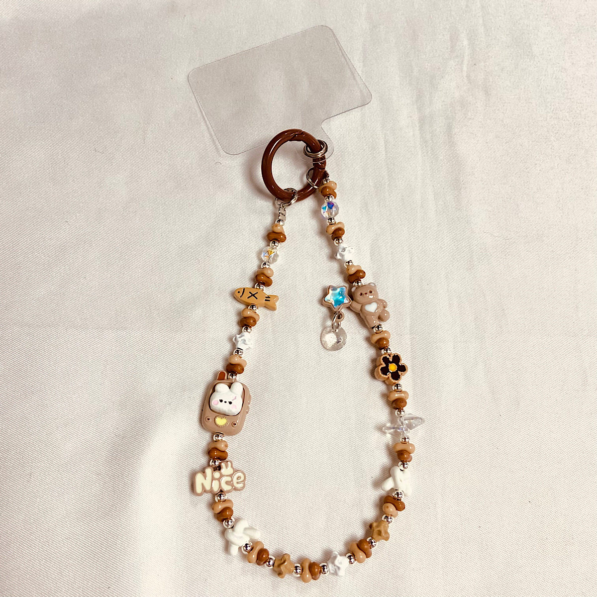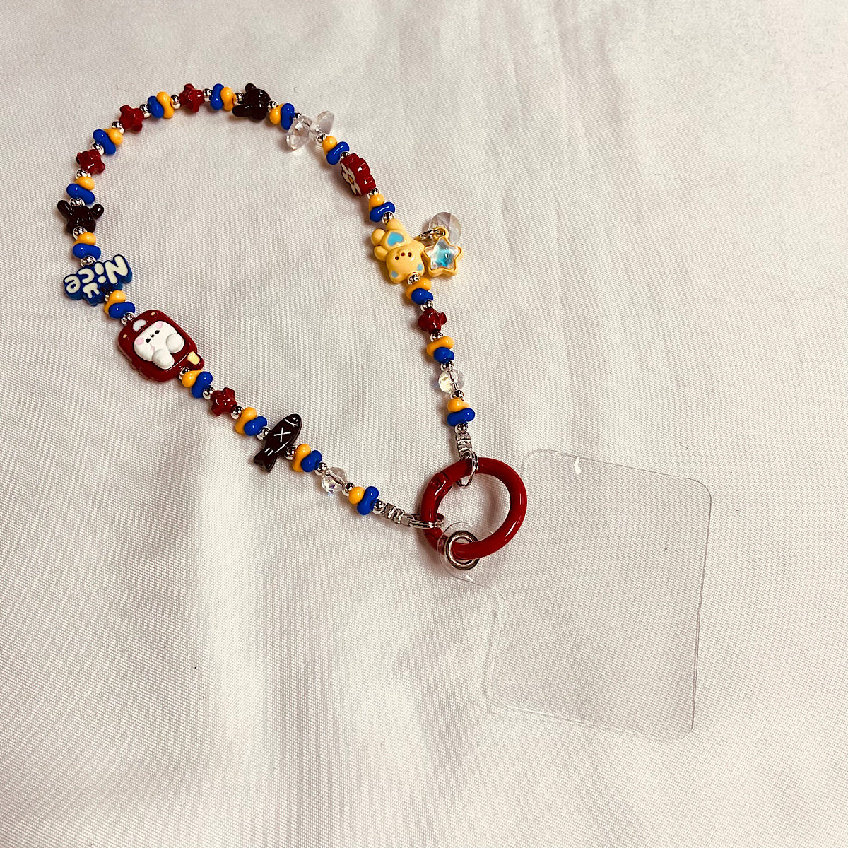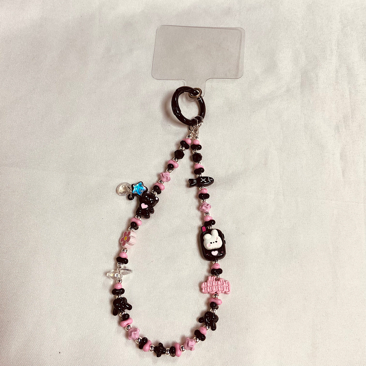卡通合金兔子链黑粉甜酷风彩色花生珠小熊包包挂饰钥匙扣挂件