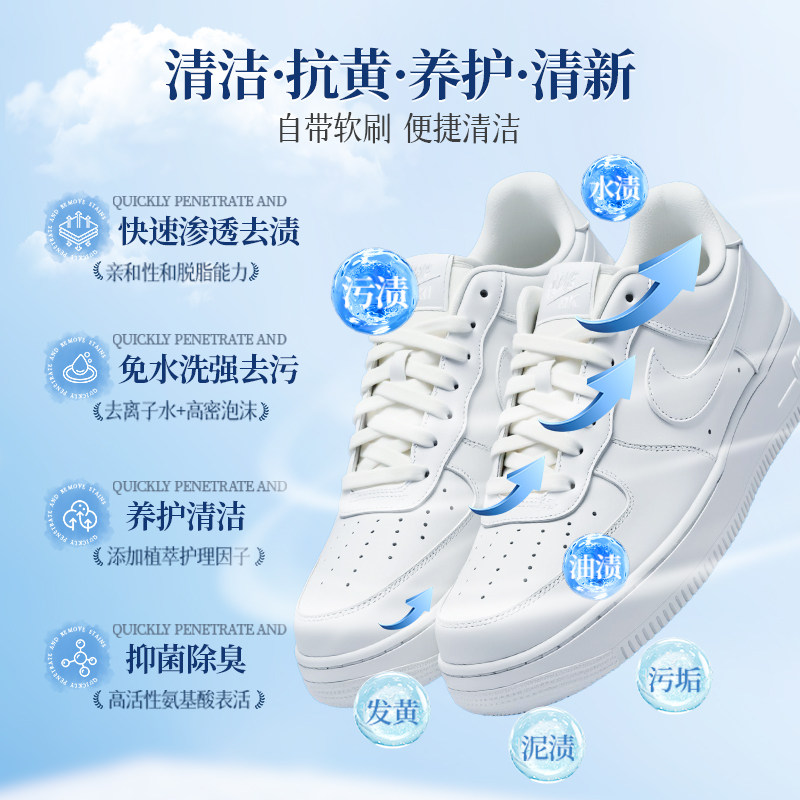 优洁士小白鞋清洁剂洗刷球网鞋去污去黄增白清洗神器免水洗干洗剂