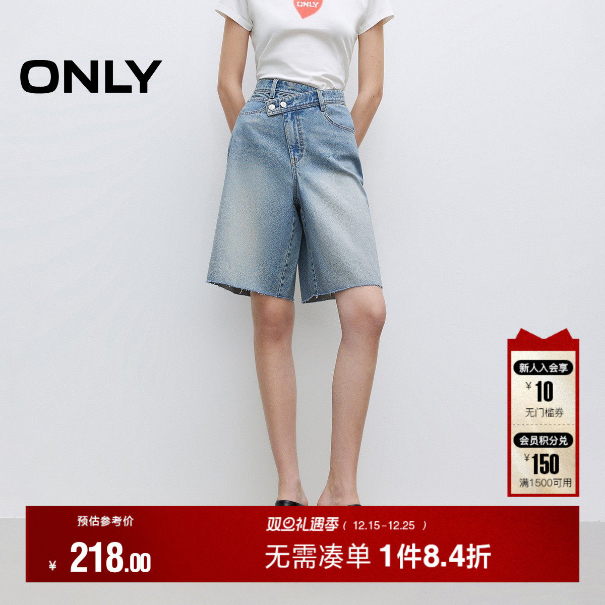 ONLY2025夏季新款百慕大短裤错位腰头设计高腰五分裤牛仔裤女