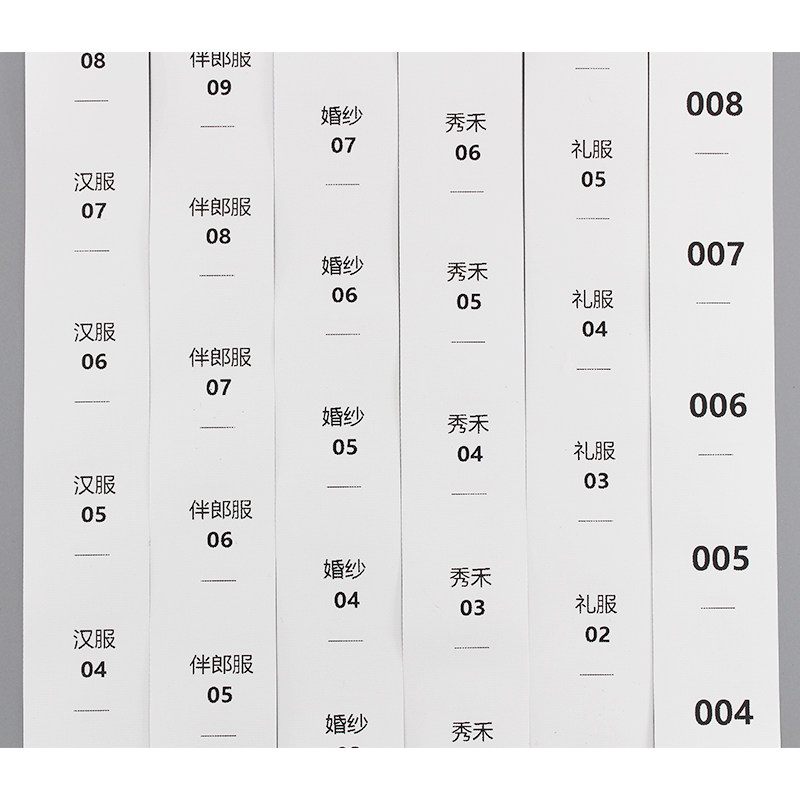 婚纱礼服标签编号 流水号数字水洗标签序列号洗唛工作服工号定制