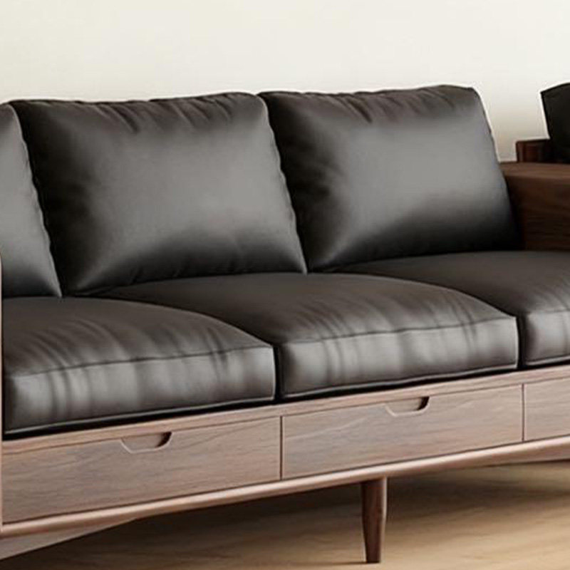 全实木沙发厂家直销新中式小户型三人位客厅真皮沙发黑胡桃木沙发