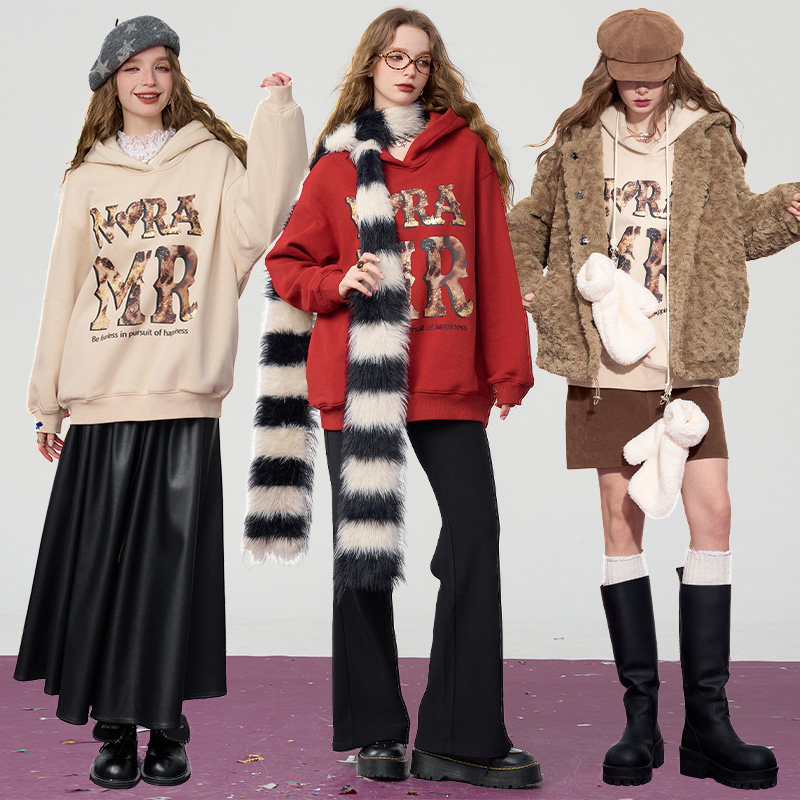 森马卫衣女设计感图案oversize发热抑菌冬绣花抓绒上衣慵懒学院风