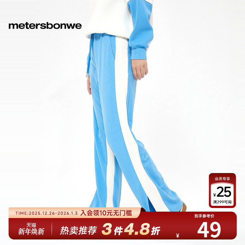 美特斯邦威长裤女春季新款时尚撞色直筒休闲裤束腰下装女裤子长裤
