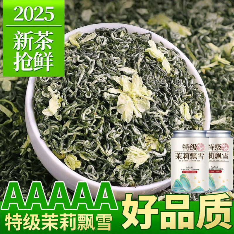 茉莉花茶2025新茶茶叶特级浓香型茉莉飘雪横县茉莉绿茶罐装自己喝
