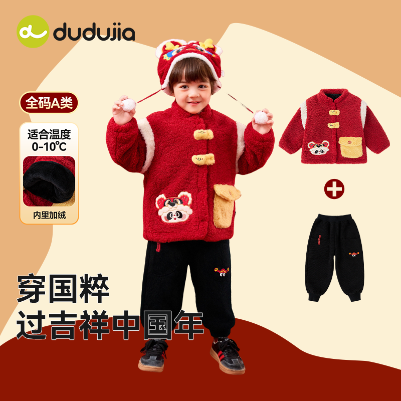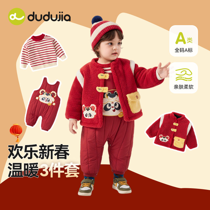 dudujia宝宝背带裤红色婴儿裤子男童衣服女童拜年服儿童童装喜庆a