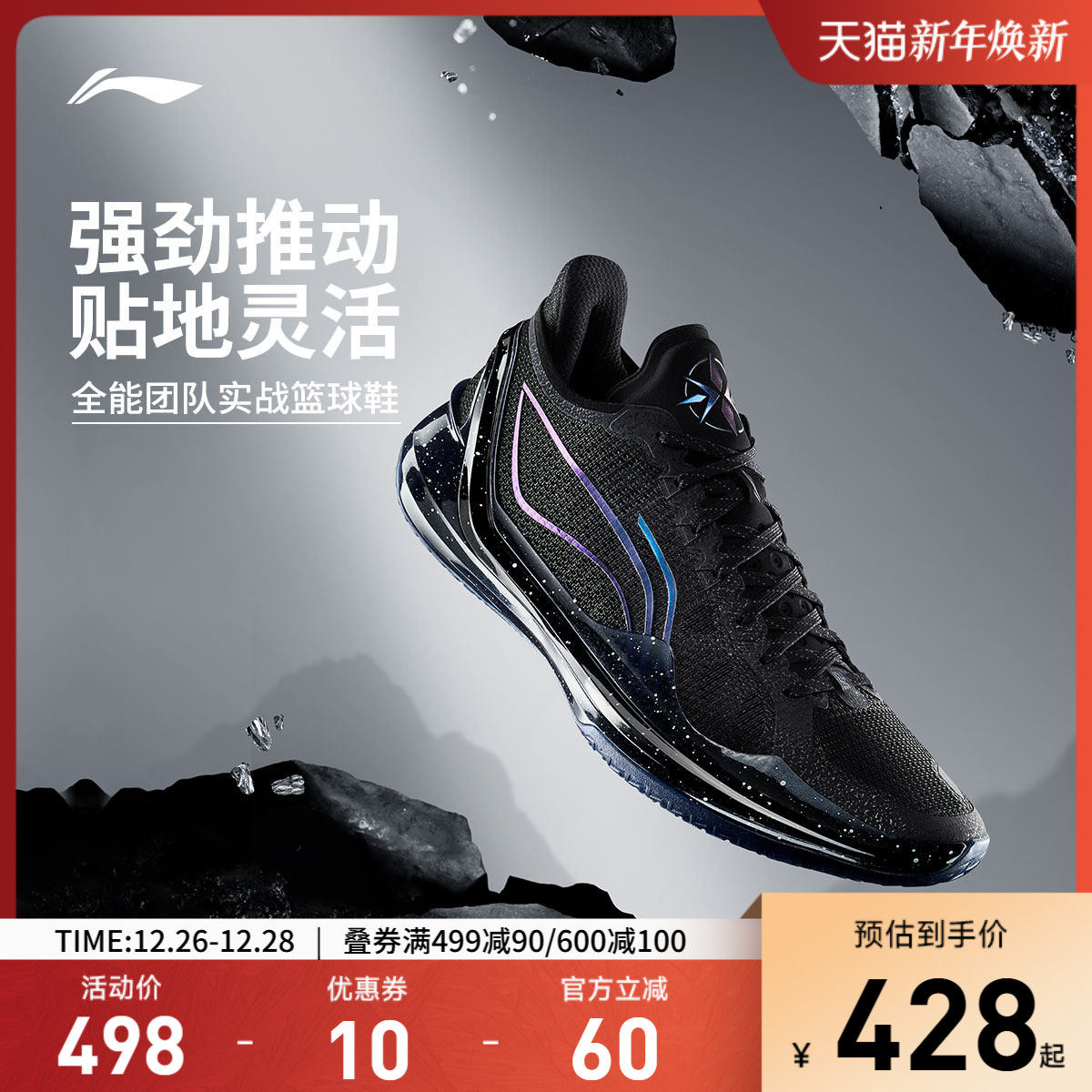 李宁利刃4V2丨 篮球鞋低帮男实战防滑耐磨全能䨻减震专业运动鞋子