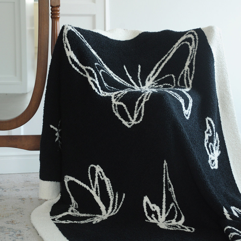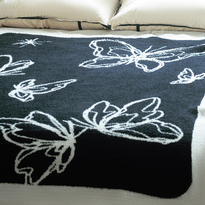 沙发毯半边绒毛毯复古蝴蝶针织毯轻奢高级感沙发办公室午睡盖毯