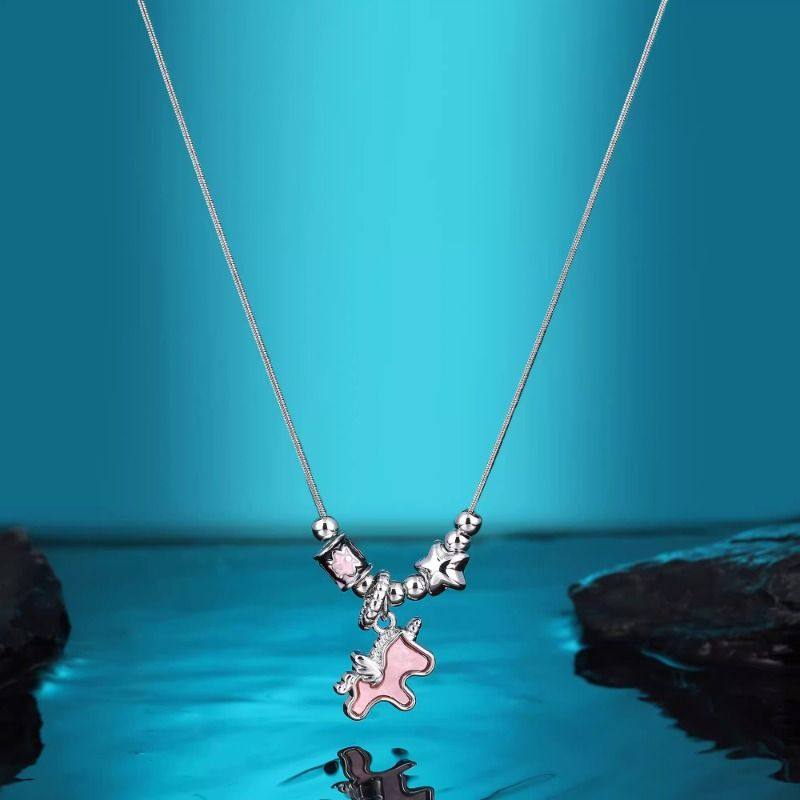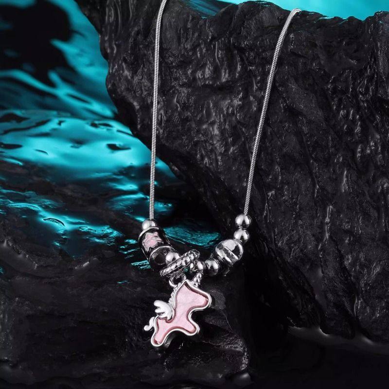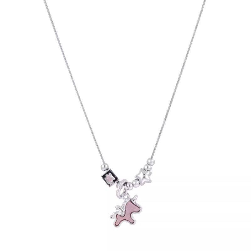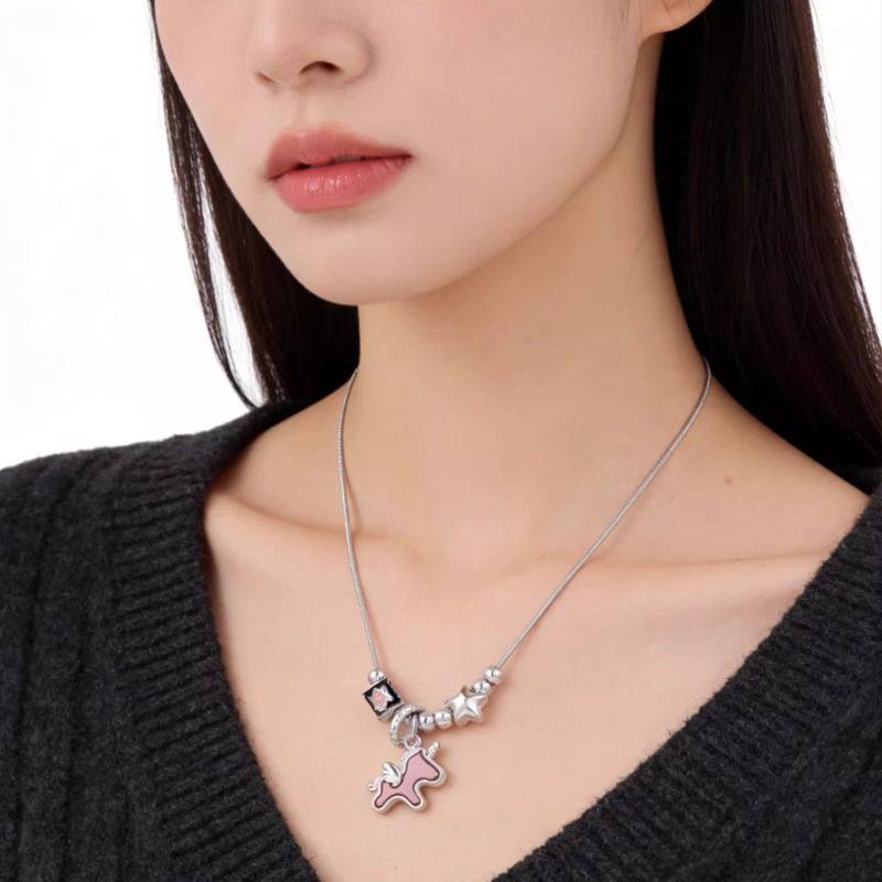 本命年马上好运粉色小马毛衣链女新年钛钢星星项链锁骨链秋冬配饰