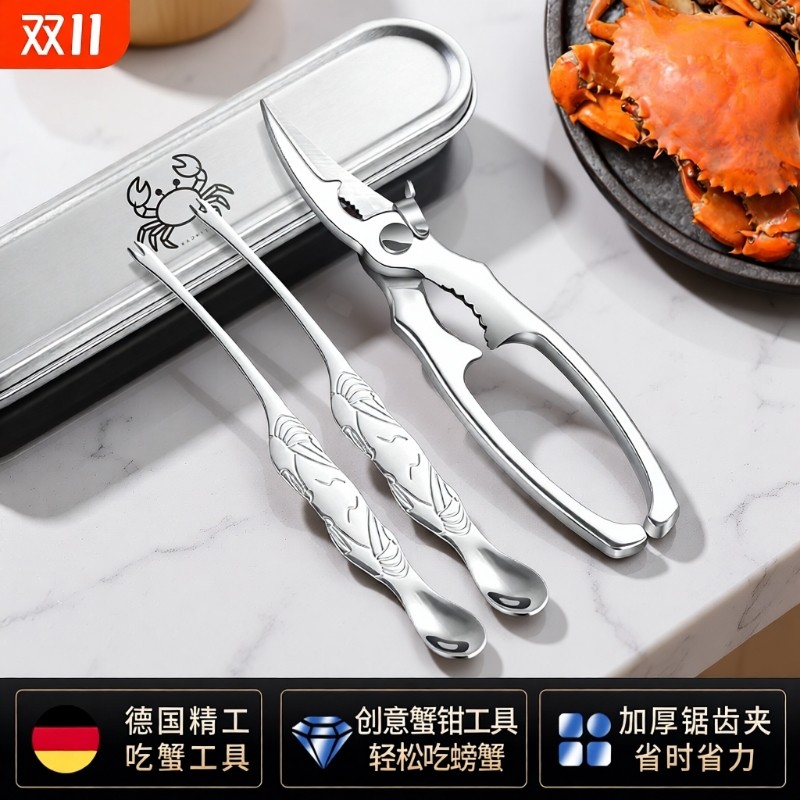 304蟹八件吃螃蟹工具大闸蟹专用剥蟹剪刀蟹钳夹蟹针套装神器吃蟹