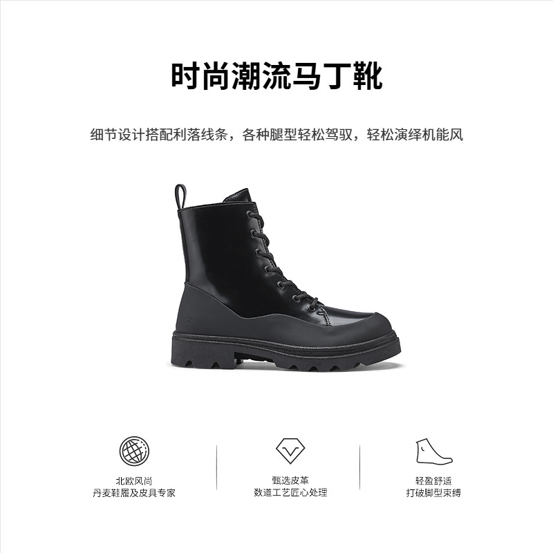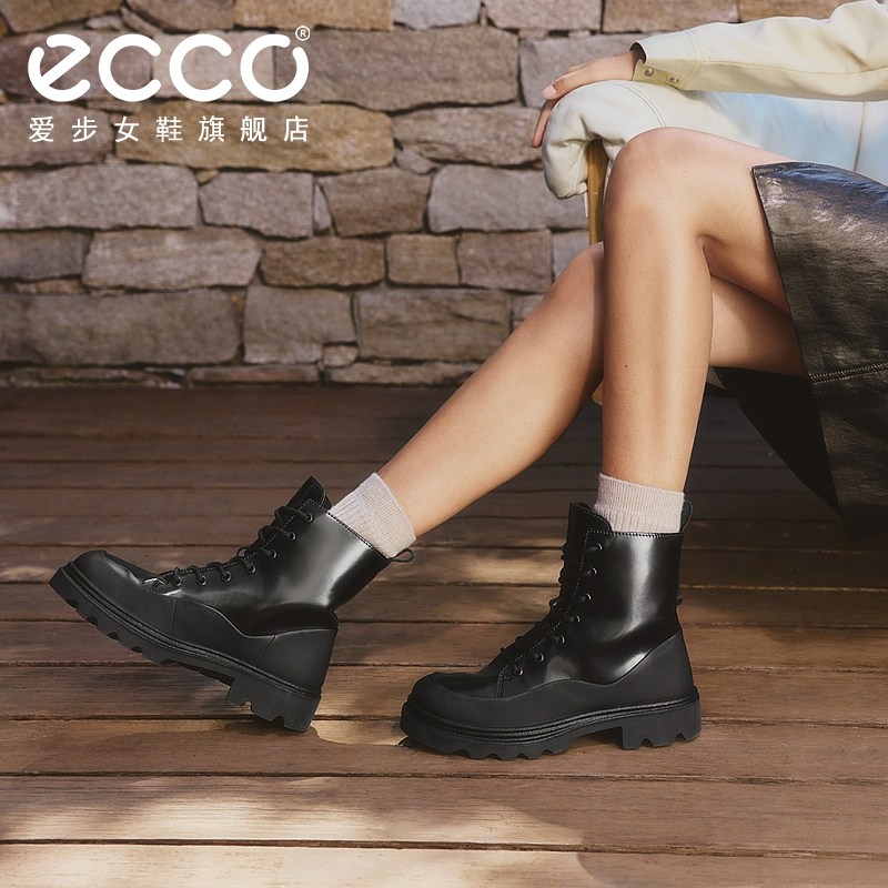 【Natacha联名】ECCO爱步靴子女 厚底增高英伦马丁靴 革新214853