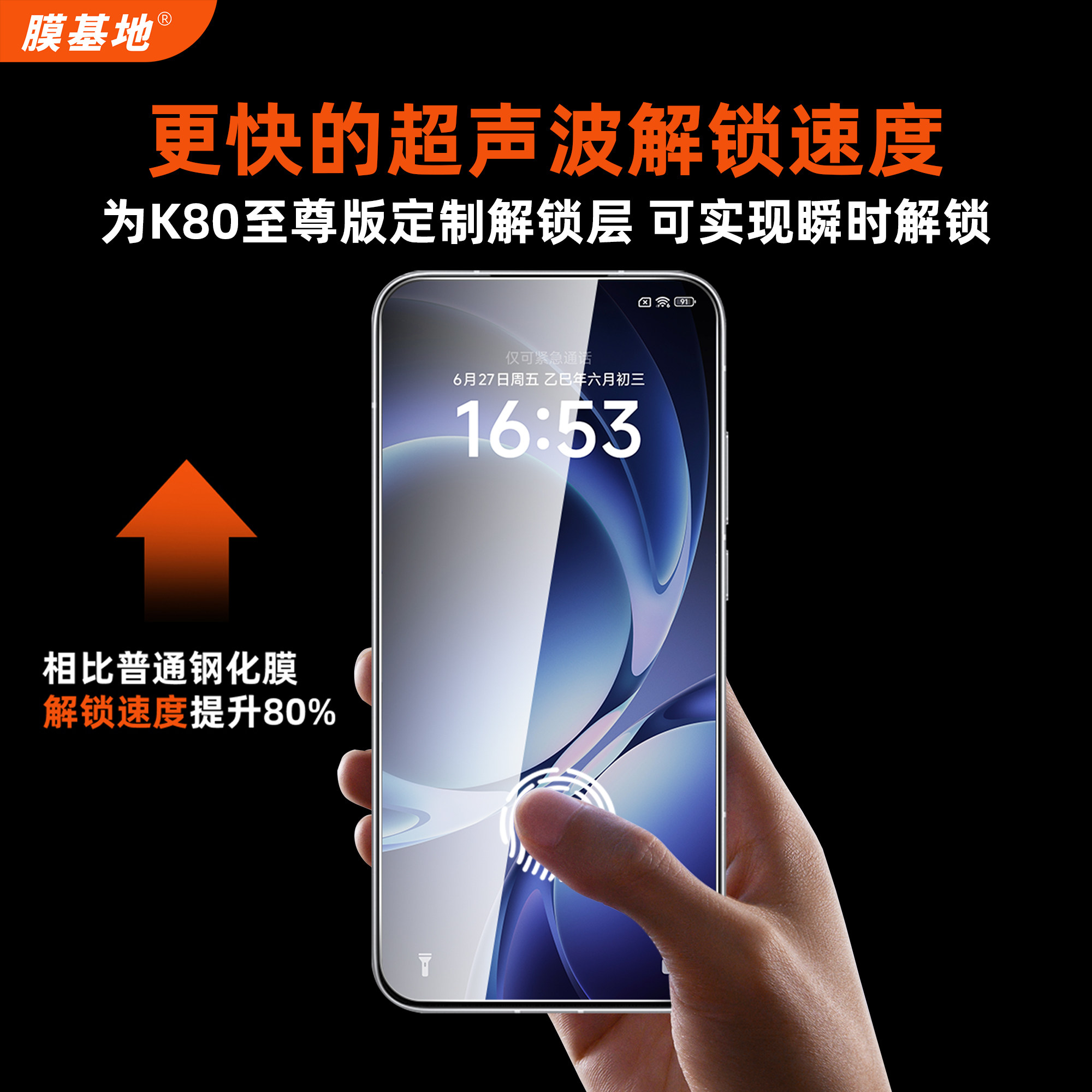 膜基地适用于红米K80钢化膜支持超声波秒解锁超薄0.1mm小米K80Pro至尊版高清防指纹无白边非全屏无开孔手机膜