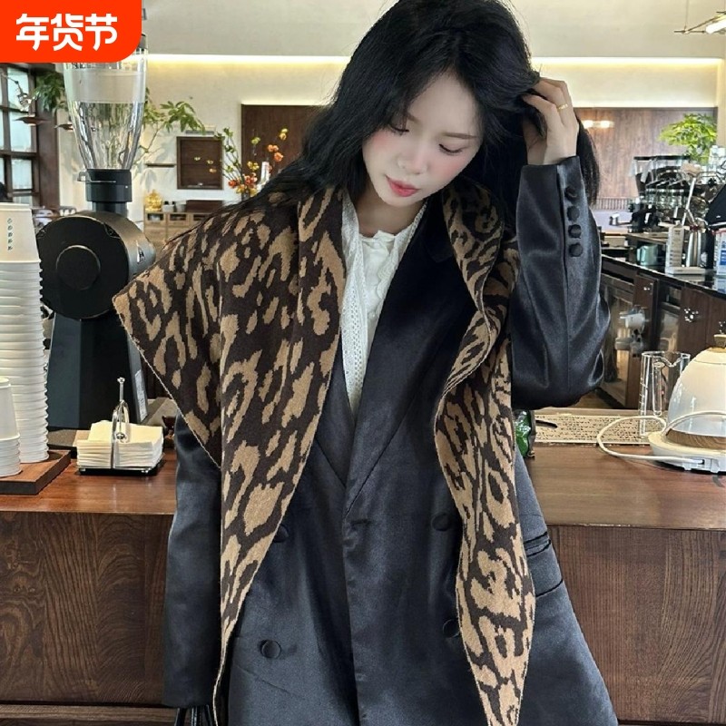 韩国东大门复古豹纹三角大披肩女2025秋冬新款空调房搭肩保暖围巾