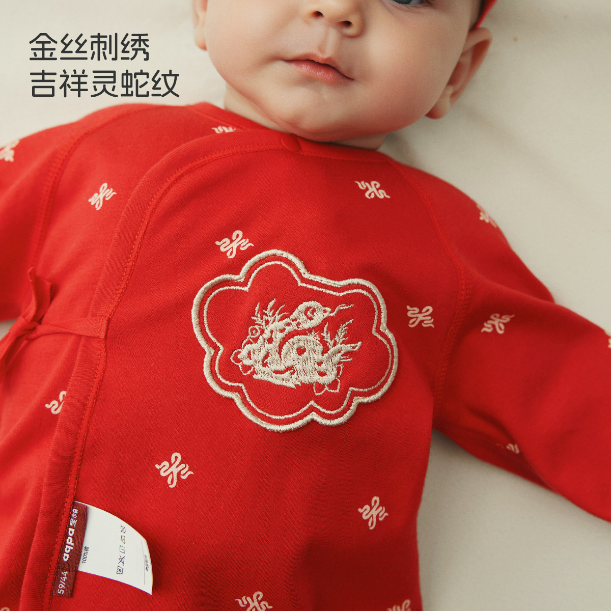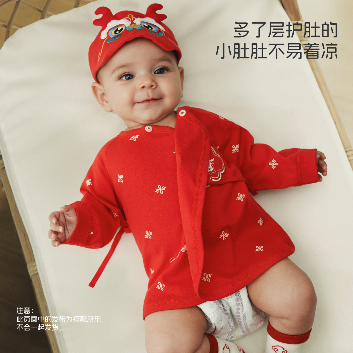 [满地金]aqpa爱帕半背衣初生婴儿秋衣上衣宝宝拜年服红色满月衣服