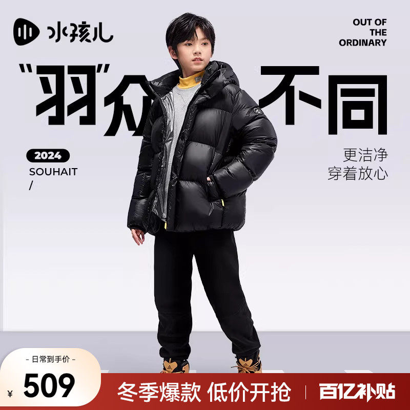 水孩儿儿童羽绒服2025秋冬男童蓄热鸭绒外套拼色女童洋气暖羽绒衣