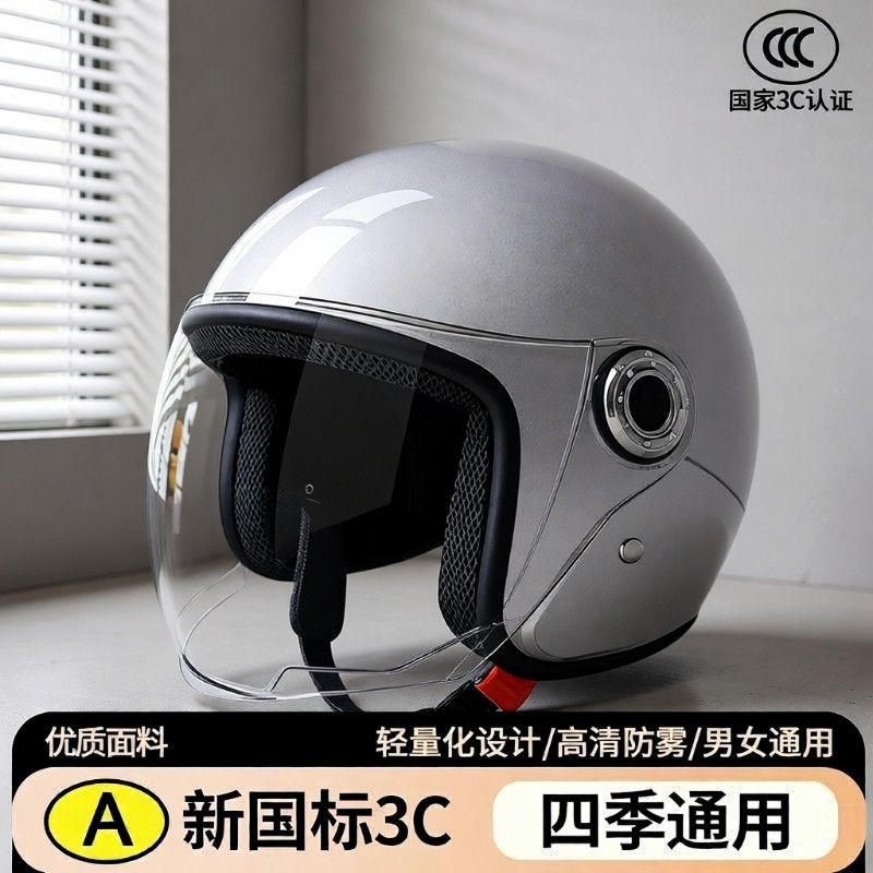 新国标3c认证电动车头盔电瓶摩托车安全帽夏季半盔四季通用镜片