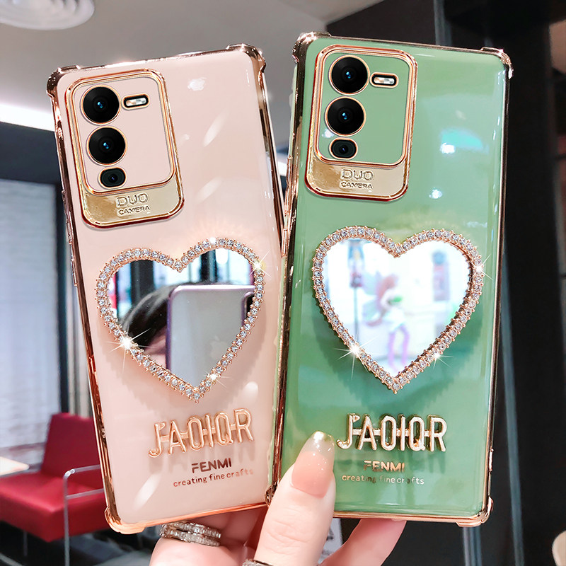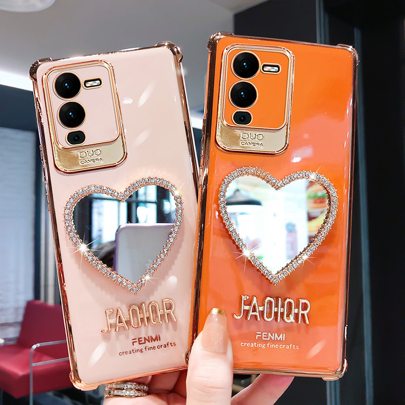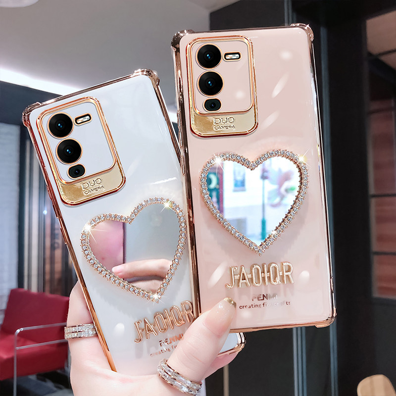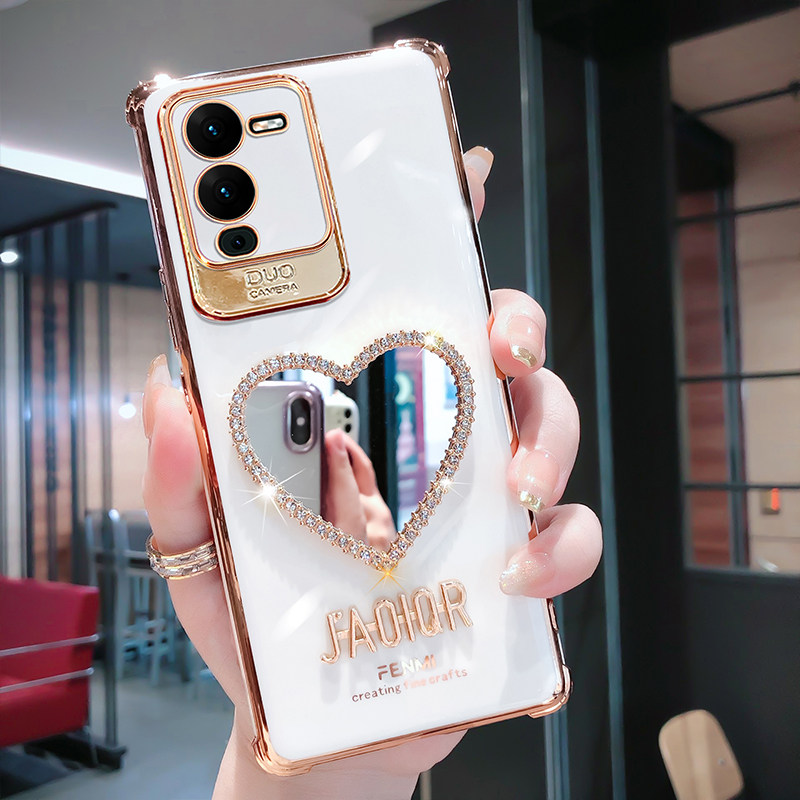 VIVOS15手机壳新款女款S15Pro高级感水钻爱心美妆镜子15Pro镜头全包vivo软硅胶防摔网红ins时尚高档奢华潮牌