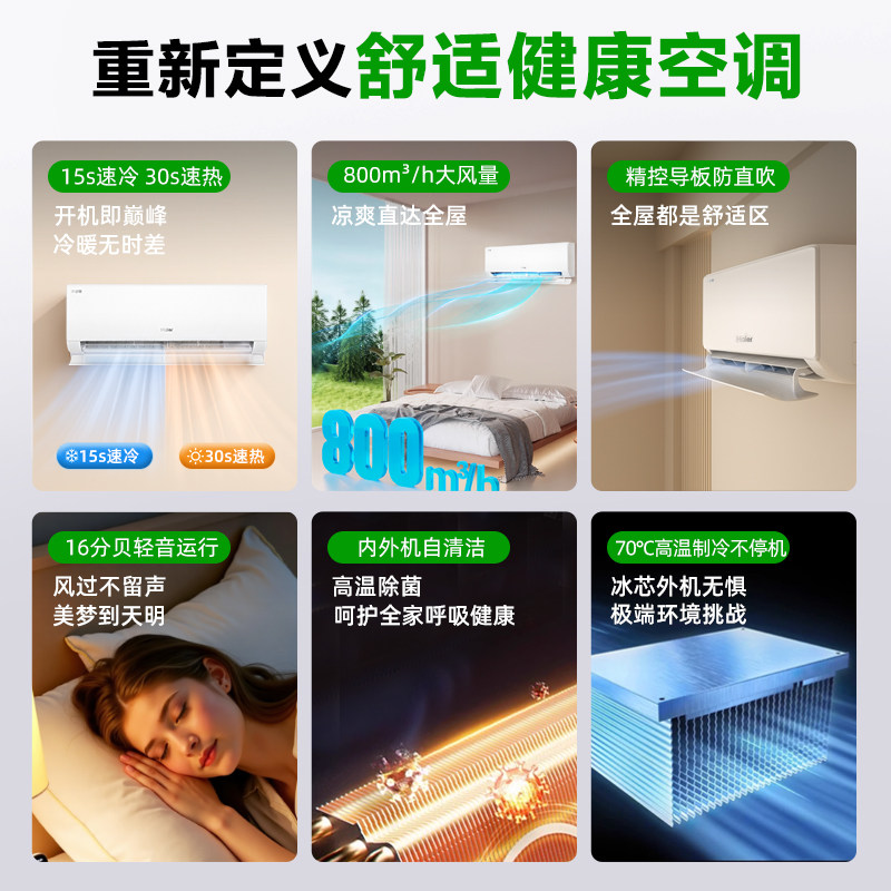 【国补8折】海尔空调1.5匹家用一级能效变频卧室挂机冷暖E1旗舰店
