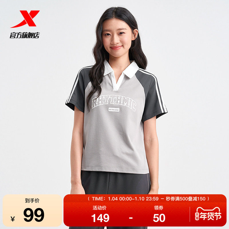 特步POLO衫女2025年夏季新品官方短款女装运动短袖975228020497