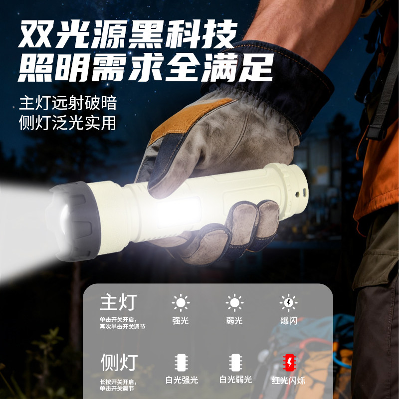 强光手电筒2025新款长续航户外照明充电变焦远射家用耐用LED便携