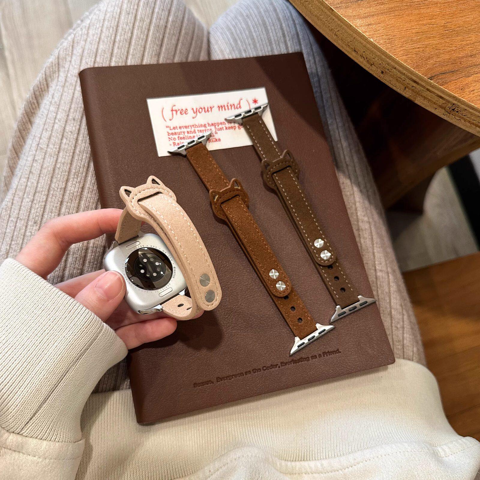 适用于vivo watch gt2手表带可爱猫耳双钉扣iQOO watch gt翻皮夏季透气百搭腕带创意智能运动配件